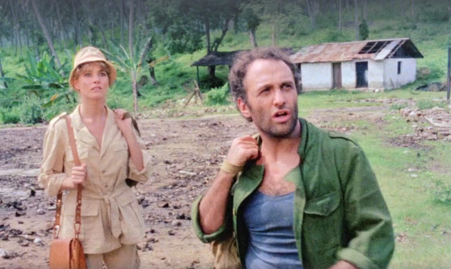 Aber auch ansonsten hat der Film zumindest vom „Stil“ her einige Narrative zu Mondo Cannibale. Diesmal war Lenzi auch selber am Skript beteiligt. Oder, was heißt „beteiligt“, er hat es selber komplett geschrieben, was aber freilich keine große Herausforderung für diesen Wahnsinnigen gewesen sein darf. Wie auch bei Mondo Cannibale ist Lebendig gefressen im Grunde ein Dschungelabenteuer, in dem die Kannibalen lediglich am Ende einen großen Auftritt haben und da ist dieser nicht mal wirklich narrativ begründet, sondern eher eine faule Lösung für den zentralen Konflikt, der Sekten-Thematik. Wie ich ebenfalls bei Mondo Cannibale schrieb, bietet die Grundidee eigentlich viel mehr Potenzial als das, was der Film am Ende präsentiert. Die Sekten-Thematik ist völlig halbgar und diente Lenzi wohl nur dazu, nochmal irgendwelche Leute in den Dschungel zu karren, Tiere zu töten (ich kann es nicht oft genug sagen) und ein paar lokale Bewohner dafür zu bezahlen, sich zu verkleiden, in den Wald zu gehen und etwas Hackfleisch mit roter Soße zu verspeisen. Vermutlich hat Lenzi zuvor einfach etwas über das berühmte Johnestown-Massaker von 1978 gelesen (ein Ereignis, dass auch schon der mexikanische Exploitation-Vertreter René Cardona Junior filmisch zu verwenden wusste, wie man bei Guyana – Kult der Verdammten aus dem Vorjahr sehen konnte. Edit: Ja, er hat sich davon inspirieren lassen, wie er in einem, sehr rechtfertigenden, Interview sagte). An sich ist die Idee zwar nicht übermäßig kreativ oder originell, würde aber doch den Nährboden für einen spannenden Dschungel-Thriller bieten. Natürlich interessiert sich Lenzi dafür nicht die Bohne. Ein paar halbgare Sätze über den Glauben der Sekte, ein paar religiöse Zeilen, vom Oberguru Rassimov gemurmelt, und schon ist der Kult der Bekloppten im Urwald fertig. Mehr macht das Skript nicht mit der Sekten-Idee, aber wer hätte das auch schon erwartet? Ach, und apropos Skript, da gibt’s auch wieder so ein paar komische Sachen. Erstmal finde ich es ziemlich, schlichtweg gesagt, dumm, dass Sheila irgendeinem dahergelaufenen Schmierlappen wie Mark einer ist, einfach mal so 100.000 Dollar für die Expedition verspricht. Gut, sie hat das Geld eh nicht, aber trotzdem hätte sie doch bestimmt irgendwie etwas… weiß nicht, Professionelles auf die Beine stellen können, um ihre Schwester zu finden? Zumal der eine Anthropologe vom Anfang ja eh Interesse an dem Fall hat. Und überhaupt: Wieso hilft ihr die Polizei nicht, wenn Jonas bereits drei Leute töten ließ?