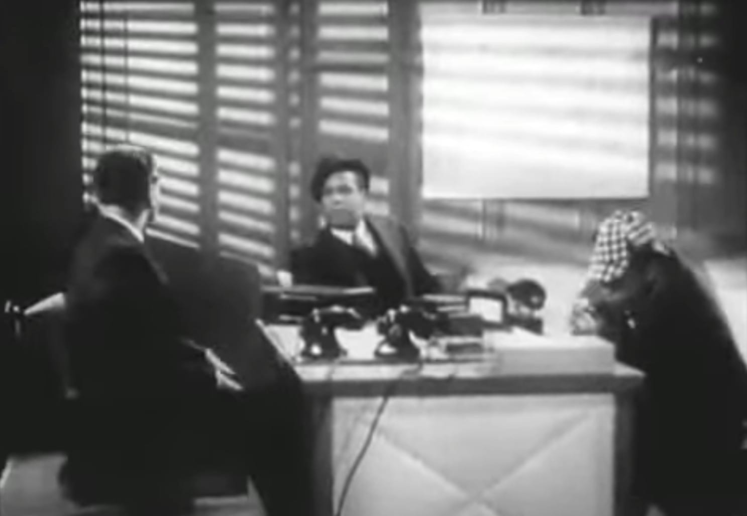 Das Skript also ist Kappes, von vorne bis hinten. Es kriegt keine der begonnenen Genres hin und versagt auf allen Ebenen. Handwerklich sieht es, selbstverständlich, nicht anders aus. Inwiefern Randol im Show-Business aktiv war, keine Ahnung, man hat offenbar nicht viele Informationen über ihn, aber im Filmgeschäft war er zu diesem Zeitpunkt noch nicht lange. Das wirkt mal wieder einfach wie ein abgefilmtes Bühnenstück einer drittklassigen Theaterentourage in der Provinz. Da fehlts komplett an Gespür für Atmosphäre, die ja durchaus vorhanden gewesen wäre. Mit der Figur des Prinz Alihabad, einem mysteriösen Zauberkünstler, und einer umherschleichenden Unbekannten, hätte man etwas herausholen können. Weder sieht man die Zaubertricks von Alihabad, noch, dass Randol irgendwie das Interesse hätte, Tempo oder Ideen in seine Produktion zu bringen. Lustig, in Anführungszeichen, ist, dass zwei Mal (wenn ich richtig mitgezählt habe) einfach im Dialog der Figuren weggeschnitten wird. Das habe ich bisher selbst bei Monogram oder PRC noch nicht erlebt.