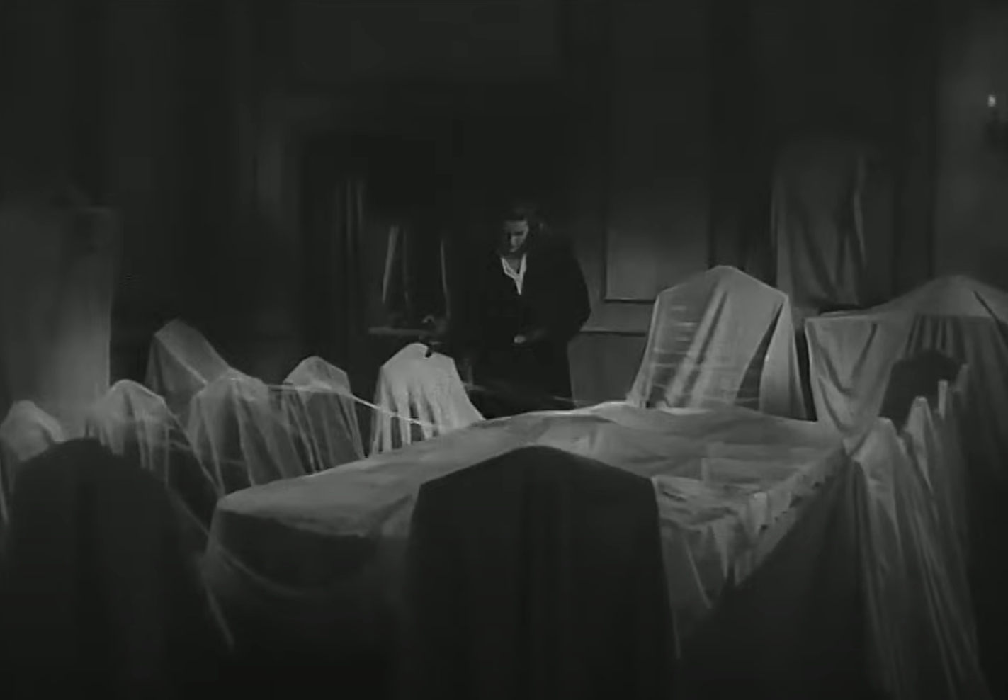 Nun denn, ich will mich nicht beschweren, irgendwie mag man Monogram dafür ja auch, oder? Denn ansonsten ist der Film doch durchaus nett anzuschauen. „Inszeniert“ vom legendären William „One-Shot“ Beaudine (inszenieren as in: Kamera aufstellen und Schauspieler machen lassen. Der Name „One-Shot“ kam nicht von ungefähr), präsentiert The Mystery of the 13th Guest den typischen „Monogramn-Charme“. Das muss man eben mögen, aber wenn man diese Billigheimer-Art mag, dann kann man 60 Minuten gut damit rumkriegen. Beaudine zeigt wie immer kaum Anstalten, irgendwelche Kniffe einzusetzen, aber, auch wie eigentlich immer, kurbelt er alles zumindest kompetent herunter und Längen gibt es auch nicht – das hat Monogram bei 60Minuten-Filmen ja auch nicht immer geschafft. Die Sets sind wenig abwechslungsreich oder spektakulär und das Ganze mutet manchmal ein bisschen wie ein billiges Provinzpossenspiel an. Wenige Räume, hauptsächlich das Morgan-Haus, dienen als Kulisse. Dieses bietet aber immerhin ein bisschen Atmosphäre, auch wenn man allzu viel davon nicht zu sehen bekommt.