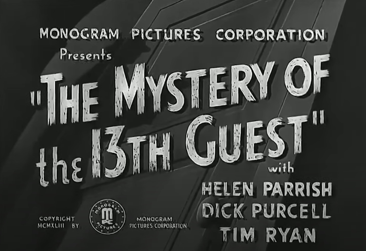 Abteilung M&M. Das steht dabei für Monogram & Murders. Ja, dank YouTube lebt der Freund von obskuren alten Filmen in glücklichen Zeiten, hat man doch ein simples Tool, um eine Hülle und Fülle an solchen Werken zu sichten, die früher (zumindest in den USA) alle Jahre vielleicht mal im Fernsehen liefen. So kann man die Welt des Whodunit von Früher, und die ist ja wirklich riesig, gut entdecken. Das tat ich ja schon einmal mit Fog Island und The Black Raven, die allerdings von PRC (Producers Releasing Company) stammen. Heute schauen wir uns mal wieder ein Werk von dem Poverty-Row Studio schlechthin an, nämlich, natürlich, Monogram: The Mystery of the 13th Guest.
